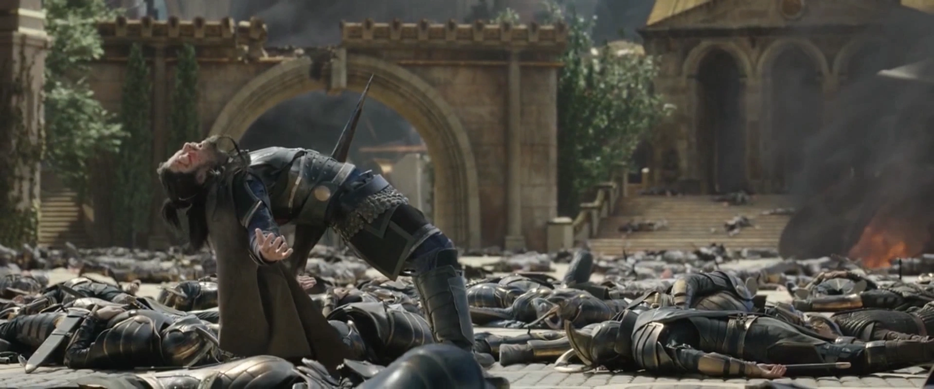 Seeing the armies standing against her, Hela appeared unintimidated by their forces and had instead explained to the whole army who she was, telling Hogun that she was in fact Odin's first born child and the one true ruler of the Nine Realms. Hogun however refused to submit to Hela's rule and attacked, resulting in him being beaten down and knocked unconscious. Hela then went on to brutally slaughter their entire assembled Einherjar army in just a matter of moments.